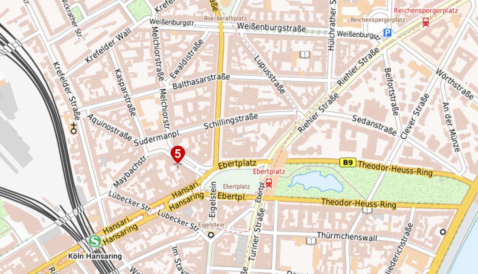 Die Kanzlei liegt verkehrsgünstig in der Kölner Innenstadt (Nähe Ebertplatz).